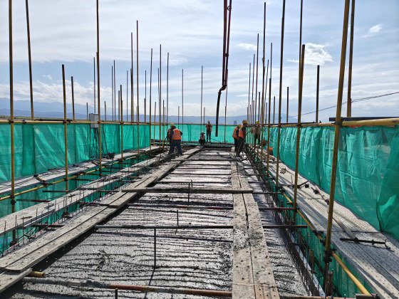 臺身前墻及側(cè)墻混凝土澆筑作業(yè)2024-07-09圖為新疆兵團建工水電集團市政路橋公司第五師雙河市沙山子線公路互通立交工程主線大橋左幅號橋臺臺身前墻及側(cè)墻混凝土澆筑作業(yè)。王小丫攝...