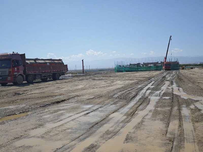圖片新聞(水車灑水)2024-07-05圖為新疆兵團建工水電集團市政路橋公司第五師雙河市沙山子線公路(互通立交工程)段水車灑水。(王小丫攝)...