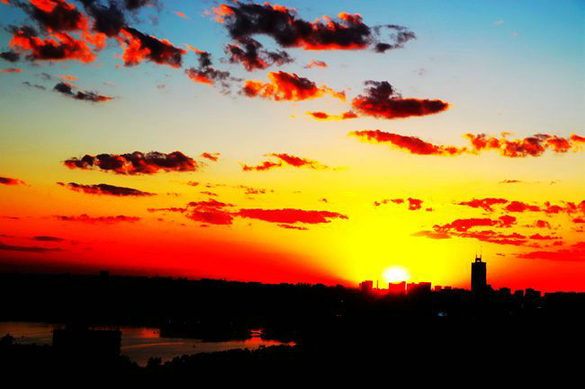 山水無(wú)憂風(fēng)起皺 落日余暉天盡愁