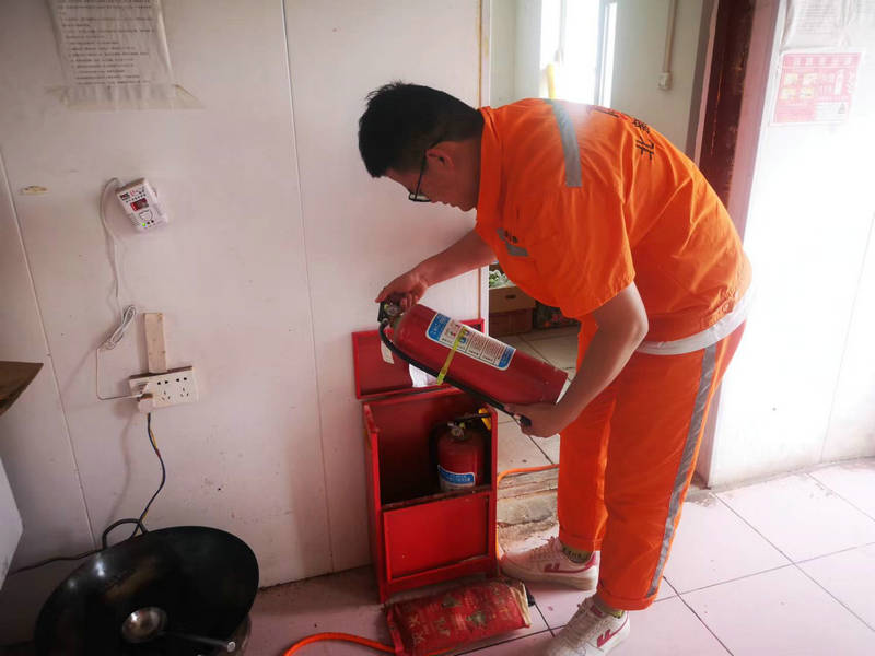 同時(shí),項(xiàng)目部對項(xiàng)目部、民工食堂燃?xì)獍踩⑺奚岚踩秒?、滅火器是否齊全有效等逐一進(jìn)行檢查,確保滅火器始終處于良好狀態(tài),能夠有效起到預(yù)防火災(zāi)的作用。