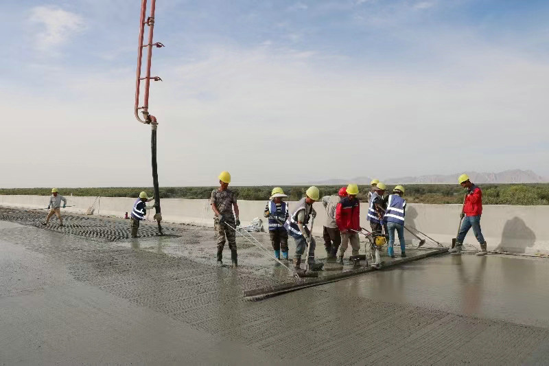 葉爾羌河特大橋全長2888m,上部結(jié)構(gòu)橋跨為96×30m,共24聯(lián),橋梁寬11。箱梁調(diào)平層厚度12cm,所需澆筑C50混凝土4147.2m³,D12帶肋鋼筋網(wǎng)片708t,橋面鋪裝橫向按整橋凈寬、縱向按一聯(lián)一次澆筑。