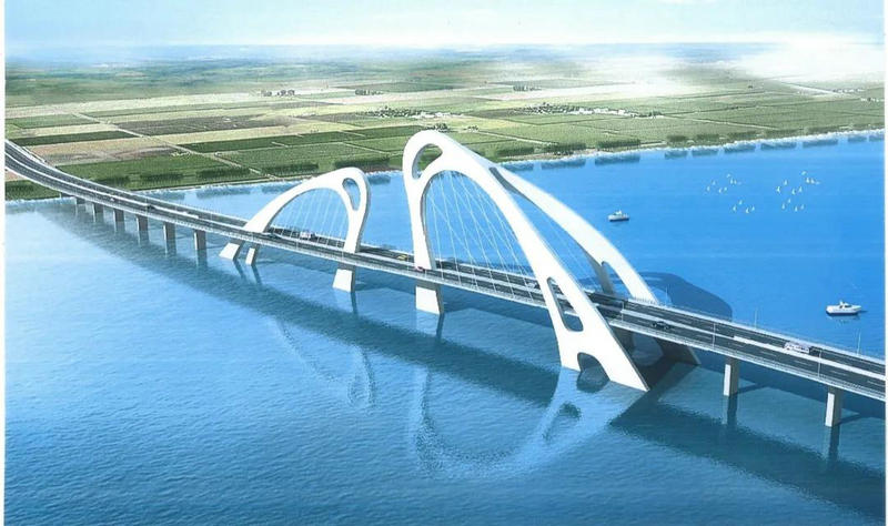 白馬湖大橋位于江蘇省重要生態(tài)保護(hù)和涵養(yǎng)區(qū)——淮安市白馬湖生態(tài)旅游度假區(qū)內(nèi),作為景區(qū)內(nèi)最重要的基礎(chǔ)設(shè)施之一,發(fā)揮著連接湖區(qū)內(nèi)外、串聯(lián)內(nèi)部景點(diǎn)的作用,同時(shí)也是淮安未來的地標(biāo)名片。其設(shè)計(jì)靈感來源于“魚躍龍門”,一大一小兩座拱塔宛若躍出湖面的白色雙魚,美觀奇特。