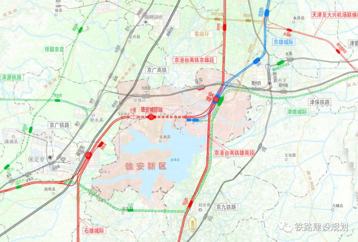 作為雄安新區(qū)“四縱兩橫”區(qū)域高速鐵路交通網(wǎng)絡(luò)的“一橫”,雄忻高鐵起自在建的京雄城際雄安站,向西穿越雄安新區(qū)起步區(qū),在起步區(qū)設(shè)雄安城際站和小里站。該線路自白溝引河?xùn)|側(cè)入地,沿起步區(qū)東西軸線地下敷設(shè),由萍河西側(cè)出地面,向西南折向保定東站。其中,城際站位于啟動區(qū)核心區(qū),小里站位于起步區(qū)第一組團(tuán)中心區(qū)域,均規(guī)劃為雄安新區(qū)“三主兩輔”樞紐客站格局中的主客站。