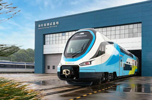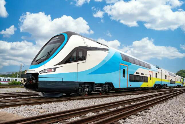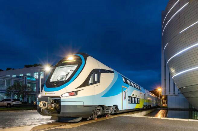 這是我國自主研制的滿足TSI標準(歐盟鐵路互聯(lián)互通技術(shù)規(guī)范)的雙層動車組,最高運營時速200公里,將出口奧地利,運用于奧地利、德國、匈牙利等5個國家鐵路線上。
