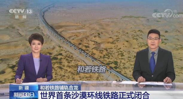9月27日上午,在新疆和若鐵路施工現(xiàn)場,隨著最后一對長鋼軌到達(dá)接軌點、精準(zhǔn)落位,標(biāo)志著由鐵一院設(shè)計,中鐵十一局和中鐵十四局承擔(dān)全線鋪軌任務(wù)的新疆和(田)若(羌)鐵路鋪軌完成,世界首條環(huán)沙漠鐵路正式閉環(huán)。
