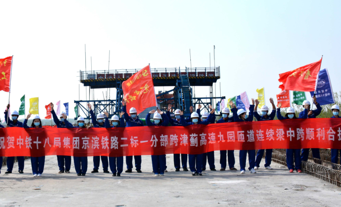 3、4月17日,中鐵十八局集團(tuán)承建的京濱高鐵北辰特大橋津薊高速九園匝道連續(xù)梁合龍(楊士超 攝)