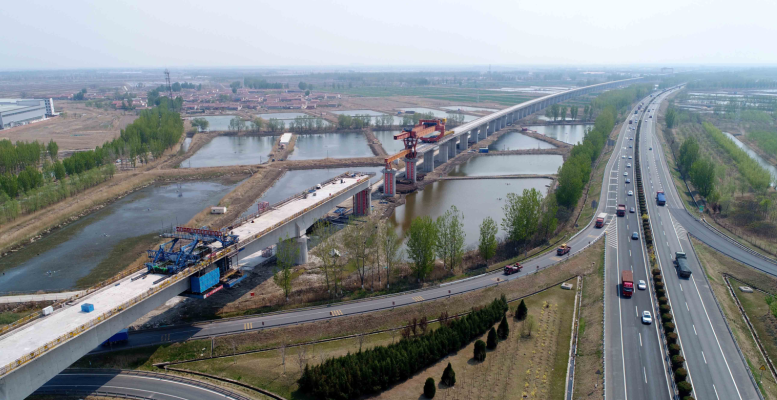 4、4月17日,中鐵十八局集團(tuán)承建的京濱高鐵北辰特大橋津薊高速九園匝道連續(xù)梁合龍(楊士超 攝)
