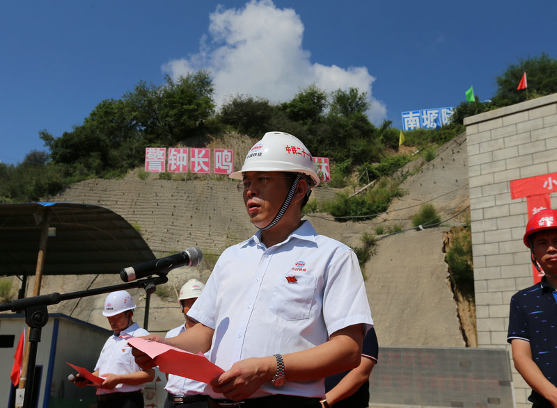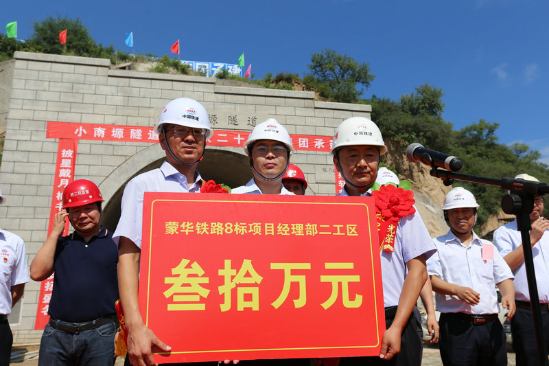 上午10時,貫通儀式在小南塬隧道出口舉行。隧道出口洞門披上了紅底白字的對聯(lián),在藍天白云的映襯下鮮艷奪目。蒙華8標項目部、一、二、三工區(qū)、蒙陜指揮部、設計、監(jiān)理組成的方隊共300余人參加了貫通慶典儀式。