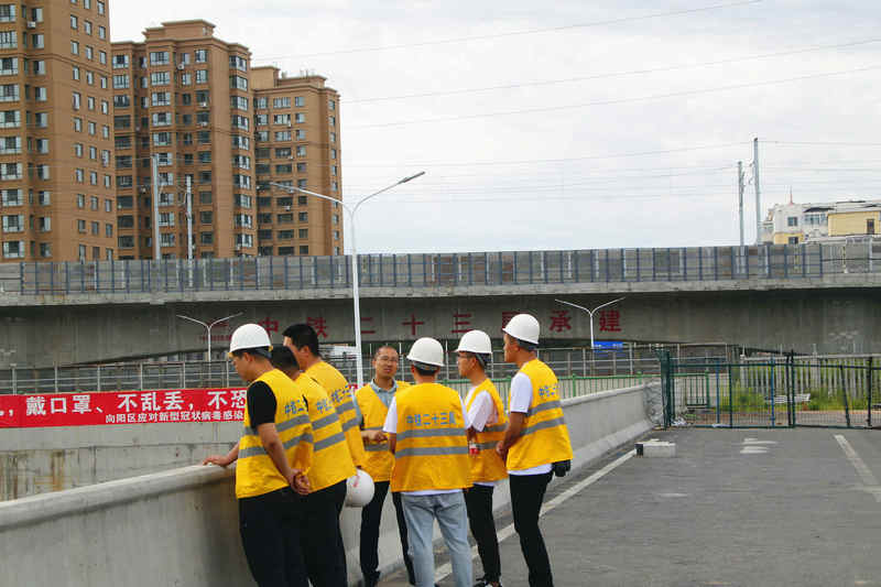 書記王維振(右四)介紹省優(yōu)質(zhì)工程學(xué)府路公鐵立交橋