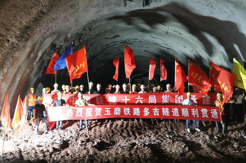 本站云南普洱8月11日訊(通訊員 許鵬健 郭琳)8月11日上午,中(國)老(撾)昆(明)萬(象)鐵路重點控制性工程多吉隧道貫通,這是國內(nèi)段93座隧道中貫通的第75座,也是全線貫通的第6座萬米長隧。至此,中老鐵路國內(nèi)段隧道工程已完成95%以上,為全線明年建成通車奠定了基礎(chǔ)。