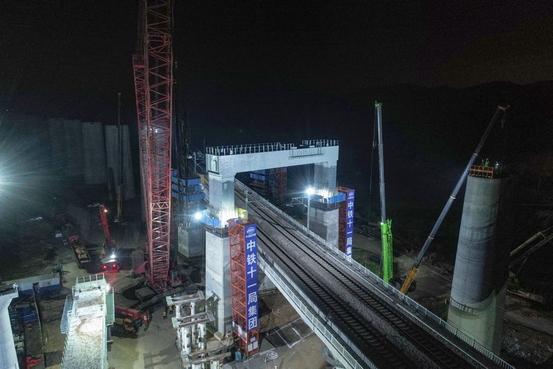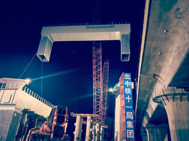本站長沙訊:8月22日凌晨2點,由中鐵十一局參建的常益長鐵路黃橋大道特大橋,跨烏山聯(lián)絡(luò)線首片門式墩鋼蓋梁吊裝順利完成。標志著該項目重難點控制性工程取得了重大突破,為全線建成通車奠定了堅實的基礎(chǔ)。