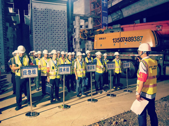 為保證吊裝任務(wù)安全、優(yōu)質(zhì)、高標準完成,益陽指揮部領(lǐng)導多次帶隊到施工現(xiàn)場幫扶指導工作,針對工程特點,在施工前,他們多次組織該項目召開鋼蓋梁吊裝施工準備會、技術(shù)交底會及安全交底會等,進行施工組織設(shè)計及方案的研討,根據(jù)現(xiàn)場實際情況進行吊裝演練。從物資供應(yīng)、現(xiàn)場安排,到施工工藝、人員分工,再到安全措施、質(zhì)量標準,每個環(huán)節(jié)都制定了詳細的方案,對參與工程施工的人員進行技術(shù)培訓,安排專人定崗定責,確保項目各級成員通力合作。“請各組做好準備,吊裝正式開始”隨著指揮員的一聲令下,750噸的巨型吊車將263噸的“大家伙”緩緩吊起至26米,逆時針轉(zhuǎn)動68度,經(jīng)過3小時的吊裝作業(yè),在有效的“天窗”時間內(nèi)安全順利地將鋼蓋梁成功跨越烏山聯(lián)絡(luò)線。