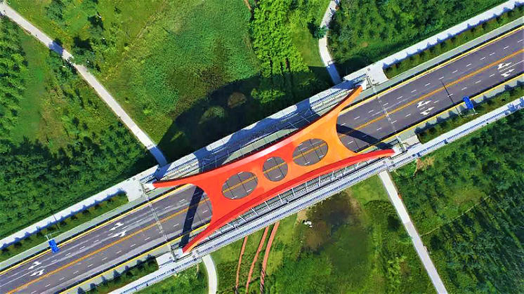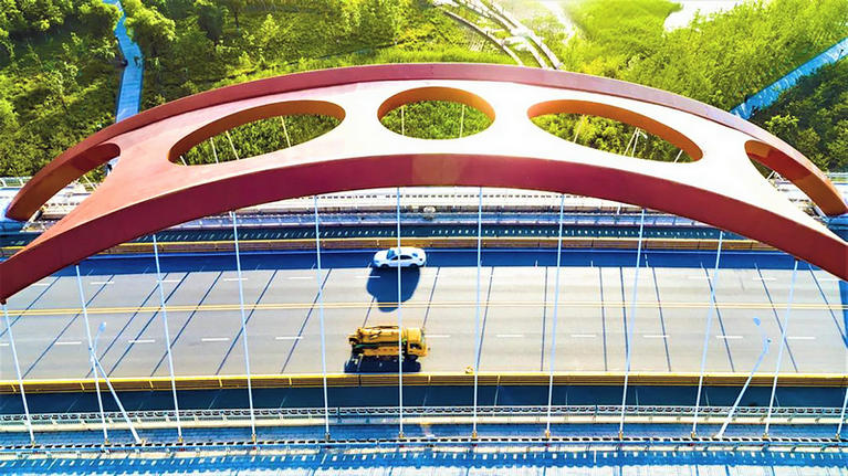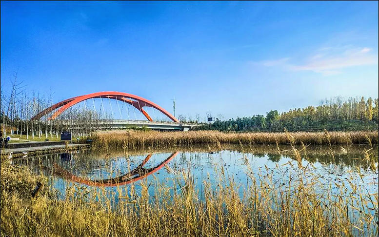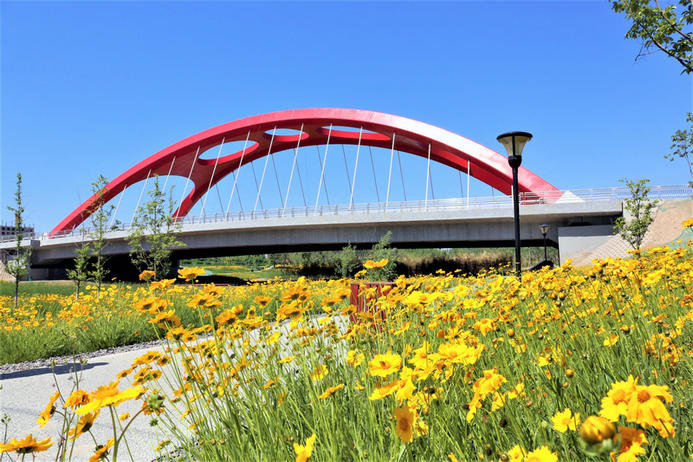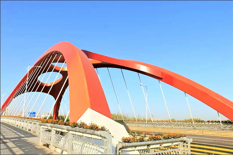 由中鐵廣州局市政環(huán)保公司承建,位于陜西西咸新區(qū)灃西新城中部浪漫新地標豐耘橋,如一道靚麗的彩虹,飛架于風景秀麗的中心綠廊濕地公園之上。豐耘橋是一座紅色拱橋,象征著愛情的熱烈,橋體全長約399米,為提籃式系桿拱橋設(shè)計,完美的流線設(shè)計,寓意愛情長長久久、順順利利,與心愛的人攜手走到豐耘橋上,感受漫地花海的圍繞,只會想到愛情的甜蜜,會更加深愛對方,這將會是愛情中一次浪漫的經(jīng)歷,只有攜手共同走過、經(jīng)歷過,愛才會越濃烈,經(jīng)歷了酸甜苦辣,真愛才會更加長久