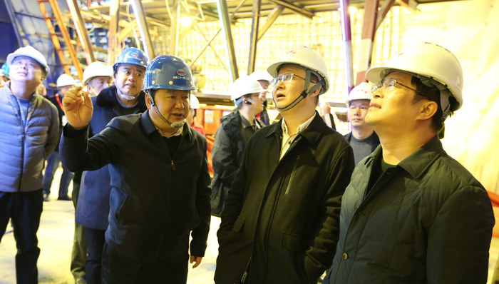 項目部總工程師陳志泉(右)介紹工程進(jìn)展情況