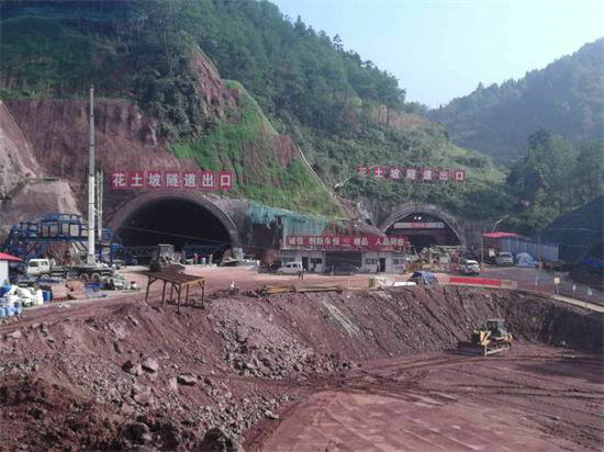 由中鐵建重慶投資公司投資的渝黔擴能工程項目?;ㄍ疗滤淼肋M洞口位于重慶市巴南區(qū)接龍鎮(zhèn)橋邊村,花土坡隧道出洞口位于重慶市巴南區(qū)接龍鎮(zhèn)柴壩村。隧道左線長1435米;右線長1504米;左線隧道洞內(nèi)縱坡為單面上坡,長1435米的。右線隧道洞內(nèi)縱坡為單面上坡,長1504米。左右洞相隔15米到 30米,進口采用削竹式明洞,出口采用單壓端墻式洞門。隧道為淺埋,最大埋深不足60米。施工圍巖破碎,多為砂巖及泥巖互成,洞內(nèi)裂隙水發(fā)育,典型的反坡排水。斷面開挖180立方/米,凈寬16米,三車道。施工采用三臺階七步開挖法。具有安全風險高、施工難度大,工期要求緊、道路交通不便、自然環(huán)境惡劣等諸多因素。是該標段施工的重、難點工程之一,也是全線的關鍵線路及控制性工程。