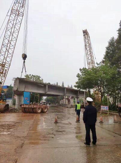 大鯨港鎮(zhèn)大橋橫跨S306省道,省道車流量大,給橋梁架設(shè)施工增加了難度。為解決這一難題,項(xiàng)目部制定了專項(xiàng)施工方案,跨省道搭設(shè)安全防護(hù)棚,并與當(dāng)?shù)亟煌ú块T積極溝通,派路政、交警部門工作人員現(xiàn)場(chǎng)指揮,確保架梁過程平穩(wěn)安全。