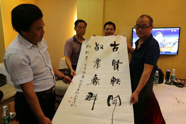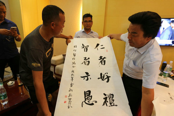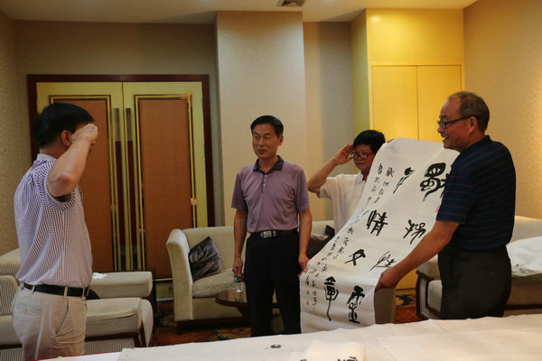 公安縣文聯(lián)主席、書法家劉世平贈送書畫。