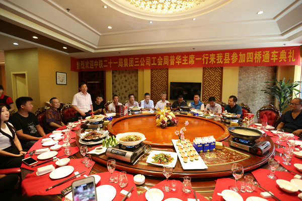 2016年3月,曾經(jīng)的鐵道兵48團,現(xiàn)在的中鐵二十一局三公司進入湖北荊州建筑市場,承建公安縣351國道黃金口特大橋、毛家港大橋、斑竹垱大橋,以及公安縣355省道洈水河等四座大橋。2018年8月18日,在建設者的辛勤努力下,這四座大橋按期通車。原48團參謀長、三公司副處長楊德榮,48團軍務股股長、三公司勞資科科長李天勝,48團軍需股正連職助理員程文財、老戰(zhàn)士賀正海、張永華、劉世平應邀參加通車慶典活動,老領導老戰(zhàn)友們與公司工會主席周普華、公司鐵道兵老同志和項目部員工在會議室進行了簡短的交談,暢敘戰(zhàn)友情誼,中午在項目部用餐。19日中午,公安籍鐵道兵老領導、老戰(zhàn)友為盡地主之誼,一再邀請公司工會主席周普華一行以及公安項目部班子成員、各部室負責人、工區(qū)長到三袁國際大酒店相聚。在昨天6名老戰(zhàn)友的基礎上,又邀請了肖文斌、李運新兩名老戰(zhàn)友參加。