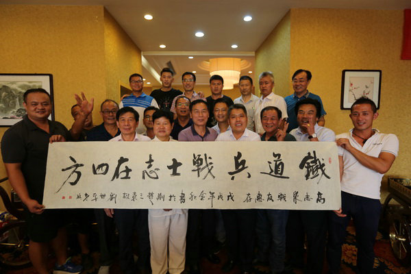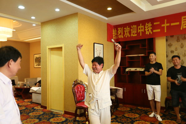 老戰(zhàn)士、公安縣文聯(lián)主席、書法家劉世平為了表達對48團娘家人的深情厚意和感謝他們?yōu)楣踩嗣裥迾蜾伮匪鞯呢暙I,不停地現(xiàn)場揮毫潑墨,為大家贈送蒼勁有力、功力深厚、具有收藏價值的字畫。老戰(zhàn)士賀正海退伍后,成為公安縣一名實力雄厚的知名企業(yè)家,賀總在祝酒致辭中道出了肺腑之言:“感謝老部隊、老單位為公安人民建成了高質(zhì)量、高標準的橋梁,極大地改善了全縣的交通狀況,方便了群眾出行。”他說,中鐵二十一局三公司公安四橋項目部在公安縣架起了五座橋梁,其中一座是公安籍鐵道兵48團老戰(zhàn)友與中鐵二十一局三公司之間聯(lián)系的橋梁。