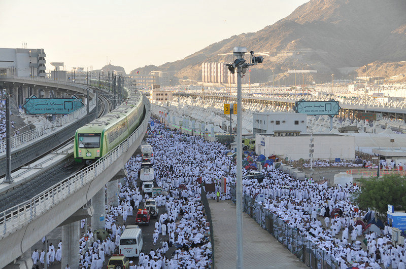 朝覲期間,列車行駛在中鐵十八局集團承建的麥加輕軌上