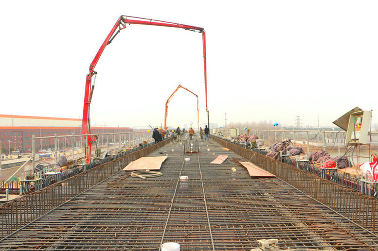 圖為武漢江北項(xiàng)目陽大公路特大橋現(xiàn)澆連續(xù)梁澆筑施工現(xiàn)場