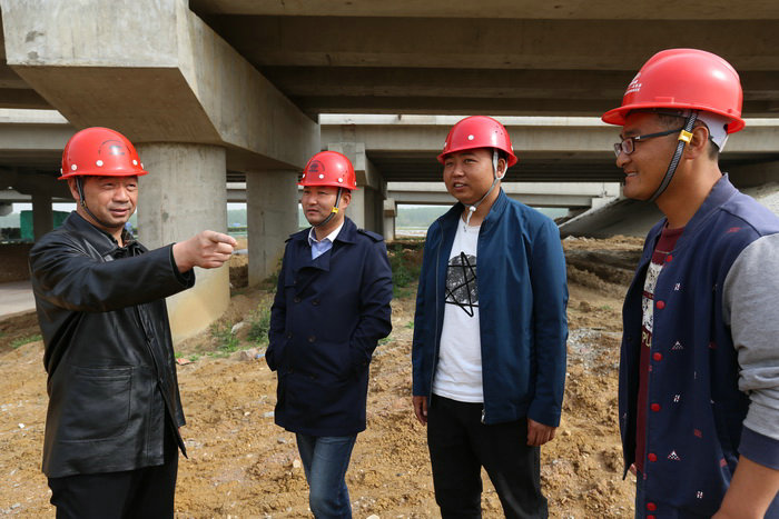 項(xiàng)目班子成員現(xiàn)場研究附屬工程施工方案 滁淮3標(biāo)認(rèn)真貫徹落實(shí)公司“建精品工程、開拓安徽建筑市場”的發(fā)展戰(zhàn)略,工程進(jìn)度、安全質(zhì)量始終領(lǐng)跑全線,2016年、2017年連續(xù)兩年榮獲安徽省交通廳信譽(yù)評(píng)價(jià)“AA”級(jí),全線獲部級(jí)工法3項(xiàng)、省級(jí)工法4項(xiàng)、科技進(jìn)步獎(jiǎng)2項(xiàng)、實(shí)用新專利10項(xiàng)。