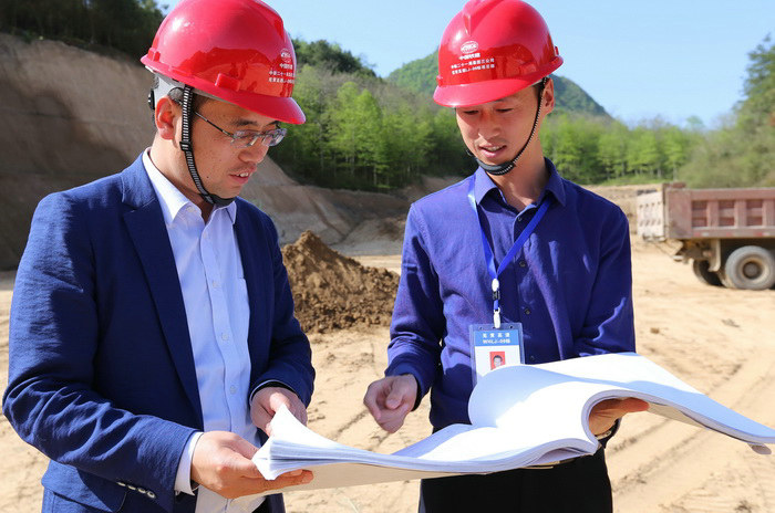 時(shí)任項(xiàng)目經(jīng)理刁小利(左)、項(xiàng)目總工雒曉亮(右)在現(xiàn)場指導(dǎo)施工