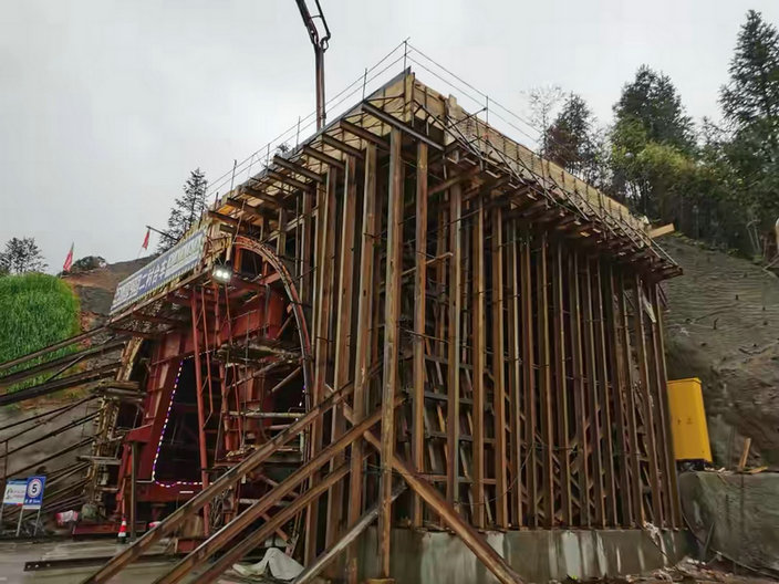 正在進(jìn)行混凝土澆筑的沱川隧道右洞“棚洞式”洞門(mén)