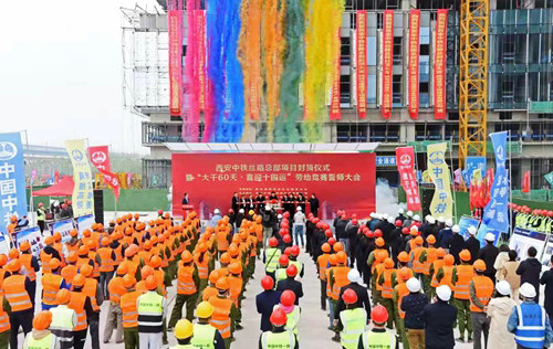 (西安訊)4月23日9:00,中鐵一局建安公司西安中鐵絲路總部項(xiàng)目在施工現(xiàn)場(chǎng)舉辦主體結(jié)構(gòu)封頂儀式暨 “喜迎十四運(yùn) 大干60天”勞動(dòng)競賽誓師大會(huì)。該工程的順利封頂,標(biāo)志著港務(wù)區(qū)奧體中心“一場(chǎng)兩館”泛光照明亮燈工程、中鐵一局在陜首個(gè)超高層項(xiàng)目取得重大進(jìn)展。