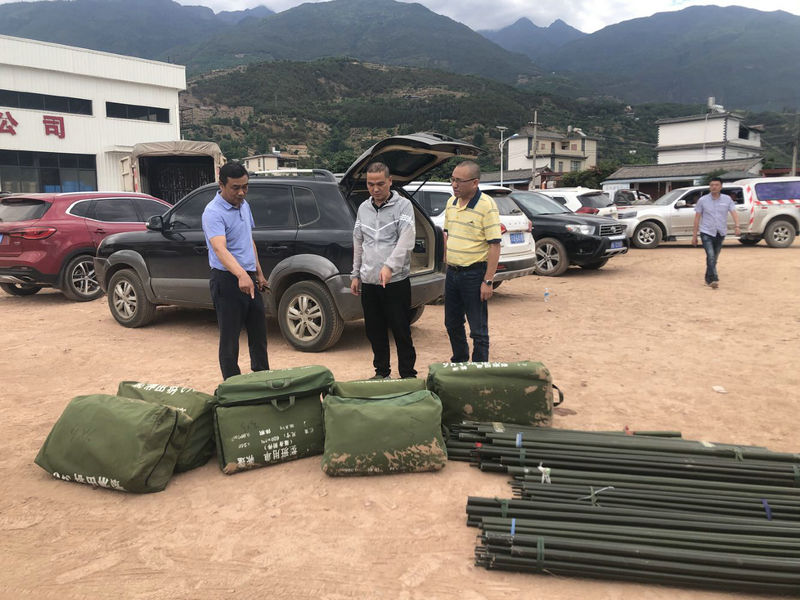 5月22日 公司副總經理邱友偉、三副總師張延吉、大瑞項目部常務副經理王志華第一時間將帳篷送達漾濞作業(yè)隊