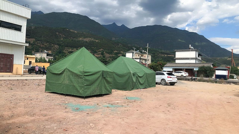 5月22日20點左右,駐漾濞作業(yè)隊連夜為當?shù)卮逦瘯腿?頂應急帳篷并搭建完成,獲得當?shù)卮逦瘯兄x信;