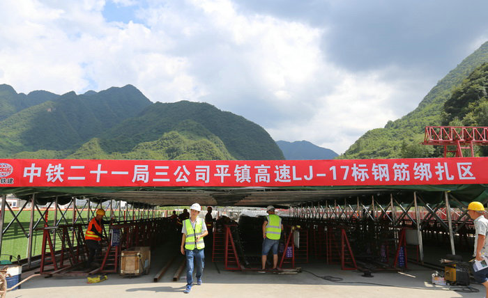 由中鐵二十一局三公司平鎮(zhèn)項(xiàng)目承建的平鎮(zhèn)高速LJ-17標(biāo)段,位于陜西鎮(zhèn)坪縣鐘寶鎮(zhèn)境內(nèi),全長(zhǎng)4.2公里。主要工程為三橋一隧一路基一互通,即鐘寶特大橋、鐘寶互通立交、羅漢宮特大橋、長(zhǎng)沙壩隧道、剪刀峰特大橋。其中橋梁主線(xiàn)全長(zhǎng)3375.9米、互通匝道橋891米。制梁場(chǎng)建在路基上,占地52畝,共預(yù)制箱梁1307片,每天生產(chǎn)箱梁5至6片,是平鎮(zhèn)高速全線(xiàn)和公司最大的制梁場(chǎng)。