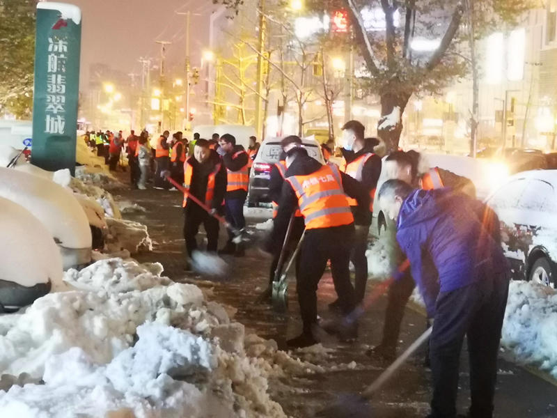 9日中午,沈陽市除雪指揮部再次發(fā)出倡議,號召廣大市民自己動手、清掃家園,迅速行動,走上街頭清冰除雪,共同打造暢通、安全出行環(huán)境。特大暴雪仍在繼續(xù),為及時清除全市路面積雪,切實保障城市道路暢通、交通安全、市容整潔、市民生產(chǎn)生活便利。晚7點,中鐵七局二公司再次響應號召,精心組織100余名職工、多臺機械,利用工作休息時間,主動走上街頭清除沈陽市和平區(qū)深航翡翠城社區(qū)周圍街道積雪,堅持為沈陽建設“創(chuàng)城促振興 創(chuàng)建惠民生”文明城市貢獻央企力量。經(jīng)過兩個多小時的連續(xù)奮戰(zhàn),累計破冰除雪3500平方米,確保道路安全暢通。