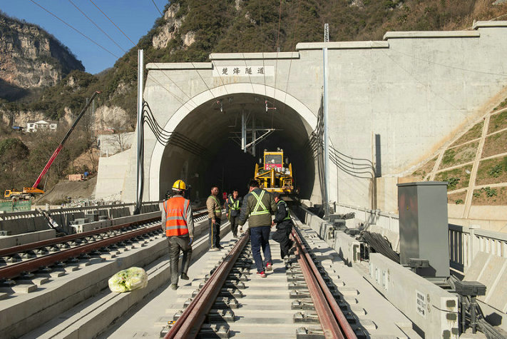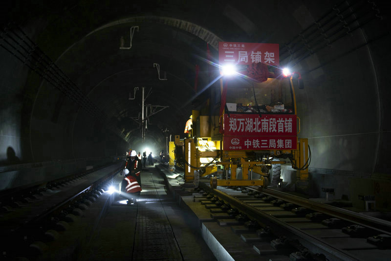 鄭萬(wàn)高鐵楚烽隧道鋪軌