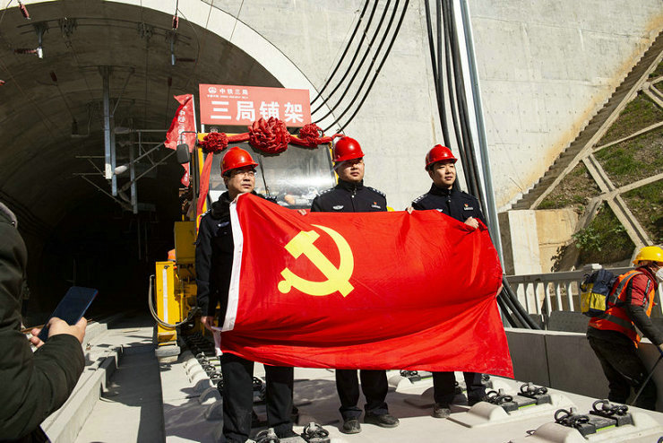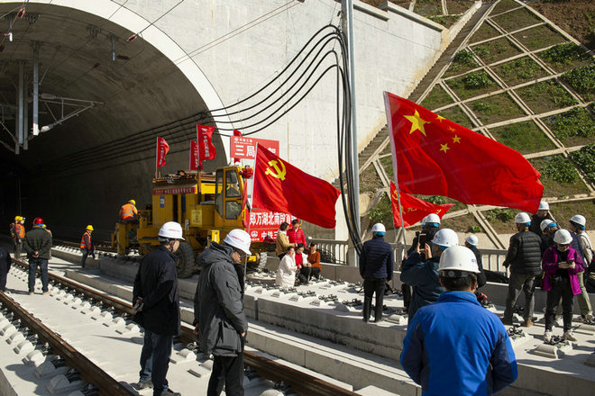 鄭萬(wàn)高鐵楚烽隧道鋪軌人們爭(zhēng)相拍照留影