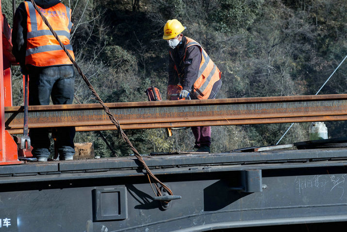 神農(nóng)架站鋪軌施工人員作業(yè)瞬間