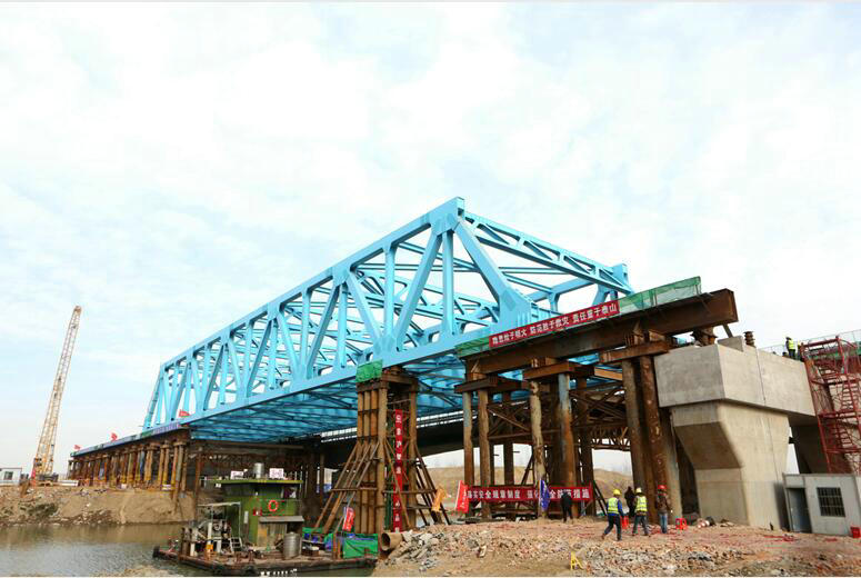12月28日上午,經(jīng)過24個小時的托拉、檢驗、糾偏、落梁等工序,長95米,重1450噸的鋼桁梁穩(wěn)穩(wěn)落在橋墩上,京滬高速公路改擴建項目跨鹽河95米鋼桁梁采用浮托法架設(shè)順利完成,標(biāo)志著由中鐵一局三公司承建的京滬高速公路改擴建項目施工進入新的階段。據(jù)悉,采用浮托法對鋼桁梁進行架設(shè)工藝為中鐵一局首次應(yīng)用。