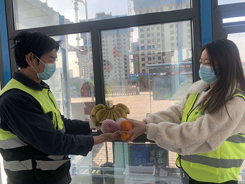 時間到了封城當(dāng)天的深夜11點15分,給項目部運輸物資的車輛順利??康巾椖坎块T口時,她才松下了一口氣。滯留在項目上的444人的生活有了保障,大家的心也踏實而溫暖起來。