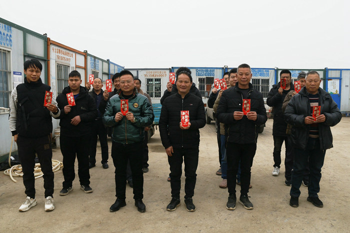 與此同時(shí),項(xiàng)目部給員工發(fā)放水果、紅包,送去新春的祝福和關(guān)愛。項(xiàng)目部、施工隊(duì)包餃子、烹飪美味佳肴,將色香味俱全的菜品擺滿餐桌,員工們吃著香噴噴的的飯菜,喝著罪人的美酒,心里樂開了花,一張張笑臉,一句句互道祝福的話,給飲食文化注入了新的元素,置身于這情、這景,哪個(gè)員工不激動(dòng)?圍坐在餐桌上來自五湖四海的員工人,真像一個(gè)團(tuán)結(jié)友愛、和諧幸福的大家庭。