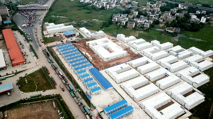圖為即將竣工的茅尾海方艙醫(yī)院全景