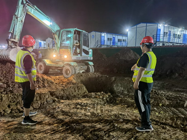 據(jù)了解,施工人員仍在爭分奪秒的奮戰(zhàn)在施工第一線。他們晝夜不停歇、奮力往前趕,力爭4月26日全面完成建設(shè)。轟鳴的機(jī)器響徹現(xiàn)場、如白晝的燈光照亮前方。星月為伴、春風(fēng)助力,施工現(xiàn)場遍地開花,點(diǎn)挨點(diǎn),線接線,畫出了一幅壯觀的施工地圖。參建人員持續(xù)發(fā)揚(yáng)特別能吃苦、特別能戰(zhàn)斗、特別能奉獻(xiàn)的優(yōu)良作風(fēng)。繼續(xù)奮戰(zhàn)在欽州茅尾海方艙醫(yī)院的建設(shè)一線。