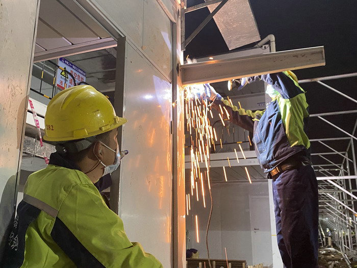 為確保交付節(jié)點(diǎn),現(xiàn)場每日召開專題會,倒排工期計劃協(xié)調(diào)解決現(xiàn)場物料采購難、穿插施工多、安裝任務(wù)重等問題,每天更新進(jìn)度,調(diào)整方案,全員兩班倒, 24小時“疫”線堅守,從晨光熹微到夜色深沉。