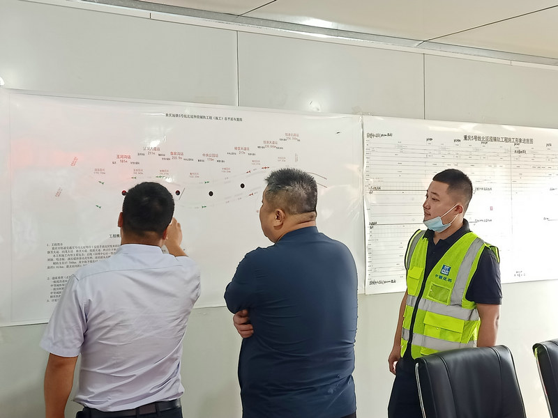 2022年5月28日上午,中鐵三局集團(tuán)線橋工程有限公司副總經(jīng)理李建軍蒞臨重慶地鐵5號(hào)線北延伸段,對(duì)鋪軌現(xiàn)場(chǎng)、機(jī)械設(shè)備、調(diào)度室、內(nèi)業(yè)、領(lǐng)導(dǎo)帶班盯崗、機(jī)械設(shè)備日常檢查監(jiān)督、班前班后總結(jié)等進(jìn)行詳細(xì)檢查,并做出重要指導(dǎo);重慶地鐵5號(hào)線項(xiàng)目領(lǐng)導(dǎo)韓云鶴、李正學(xué)、分管運(yùn)輸副經(jīng)理陳琪陪同檢查。