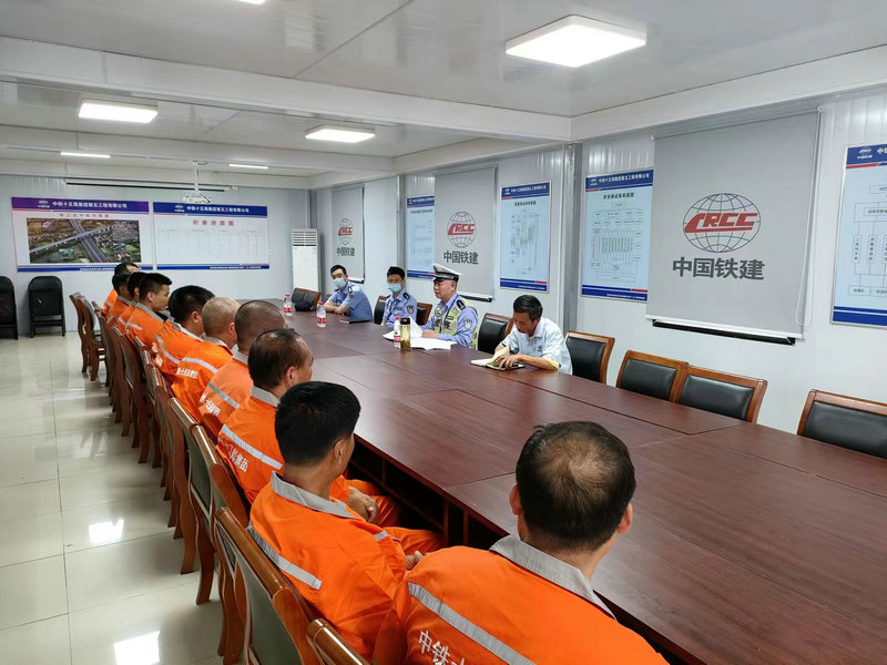 “長期在施工現(xiàn)場的便道上行駛,不少罐車司機逐漸淡忘了交通法規(guī),養(yǎng)成了一些不好的交通陋習,交通安全意識也變得有些淡薄。為切實提高每一位罐車司機的交通安全意識,豐富他們的交通安全法規(guī)知識,引導他們遵守交通法規(guī)的良好習慣,我們特邀了當?shù)亟痪瘉硎谡n。”中鐵十五局五公司滬蘇湖項目黨支部書記陳兆艷介紹。