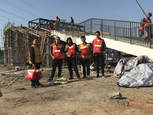 9月20日上午9時(shí),齊富項(xiàng)目部副總工程師孟曉東帶領(lǐng)項(xiàng)目部綜合辦公室人員來(lái)到K1+289.7鐵路道口人行天橋施工現(xiàn)場(chǎng),將中秋月餅送到了施工一線員工手中,為施工現(xiàn)場(chǎng)員工送上了禮品及祝福,感謝他們?cè)陔p節(jié)期間堅(jiān)守在人行天橋施工現(xiàn)場(chǎng),為人行天橋建設(shè)的建設(shè)付出的辛勤努力,希望借此次雙節(jié)慰問(wèn)活動(dòng)可以讓節(jié)日期間離家在外、堅(jiān)守在工作崗位上的員工們度過(guò)一個(gè)愉快的節(jié)日。