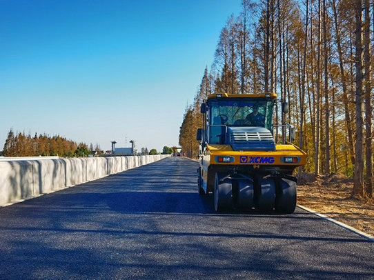 由中鐵十五局承建的崇明生態(tài)島環(huán)島防汛提標(biāo)二期工程(奚家港-護(hù)鱘路)施工1標(biāo),堤頂?shù)缆啡L(zhǎng)5.24千米,寬9米。路面結(jié)構(gòu)形式為15厘米級(jí)配碎石墊層,30厘米水泥穩(wěn)定碎石基層,6厘米AC-20C瀝青混凝土中面層,4厘米AC-13C瀝青混凝土面層。