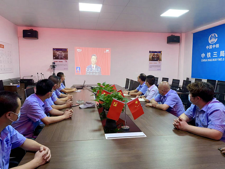 2022年10月16日,中國共產(chǎn)黨第二十次全國代表大會在北京勝利召開,為鼓舞全體員工喜迎盛會,不斷提高員工的政治參與感和主人翁意識,中鐵三局線橋公司運(yùn)輸分公司組織各項(xiàng)目員工觀看了中共二十大的開幕式直播,共同見證了這個不平凡的時刻。