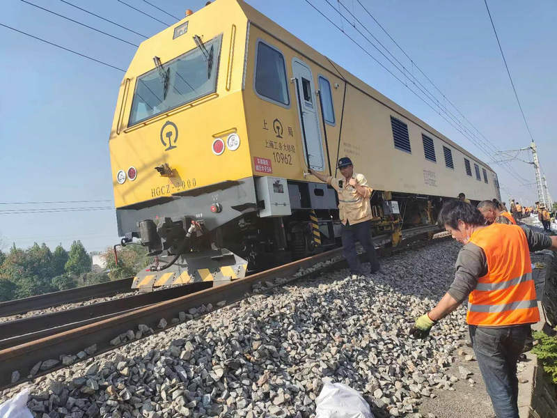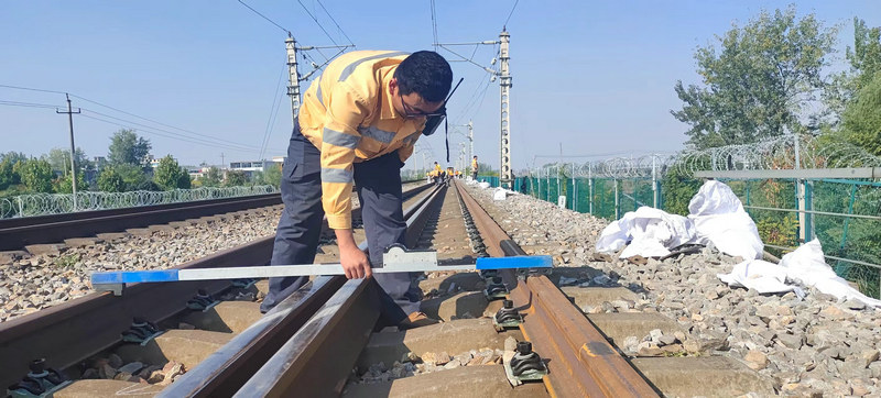 “師傅,這里連續(xù)有幾塊膠墊偏斜,請一會整好。在那邊有兩個螺絲扭力矩不到位,我在枕木面做了標(biāo)記等會兒去復(fù)擰一下……”10月21日,在京九下行線K790+520公里處,中國鐵路上海局集團有限公司阜陽工務(wù)段亳州線路車間王寨示范隊職工胡天賜監(jiān)控大列換軌質(zhì)量,發(fā)現(xiàn)連續(xù)幾塊膠墊歪斜及扣件扭力矩等問題,立即通知施工人員進行整改。