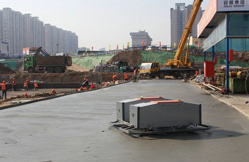 據(jù)悉,此次引進(jìn)“上崗”使用的混凝土地面施工系列機(jī)器人由激光地面整平機(jī)器、履帶抹平機(jī)器人及地面抹光機(jī)器人三套設(shè)備組成,適合于大跨度地下及地上建筑地面施工,正常施工條件下可實(shí)現(xiàn)24小時(shí)施工作業(yè)。其中,激光地面整平機(jī)器人用于混凝土澆筑后,對(duì)地面進(jìn)行高精度整平施工,施工時(shí),操作人員無(wú)需進(jìn)入混凝土澆筑區(qū)域,通過遙控或者提前進(jìn)行AI設(shè)定,機(jī)器人便可自動(dòng)進(jìn)行高精度找平施工,它施工的精度能從傳統(tǒng)人工的10毫米提升到4毫米以內(nèi),時(shí)節(jié)約人力3-5人。履帶抹平機(jī)器人用于對(duì)地面進(jìn)行提漿、收面、壓實(shí)等施工作業(yè),它有一個(gè)靈活的“圓型手掌”,可以高效的為混凝土面抹平、定型,操作人員設(shè)定好需要的數(shù)值后,遙控操作機(jī)器人不用花大力氣即能輕松將混凝土抹平,效率是人工的2-3倍。地面抹光機(jī)器人主要用于地面收光、壓實(shí)施工作業(yè),它行動(dòng)迅速,所過之處皆變光滑,采用遙控操作后,作業(yè)面不留腳印,效果好、效率高,是人工的3-5倍,根據(jù)現(xiàn)場(chǎng)實(shí)施效果,十五分鐘可以完成120㎡的整平工作。
