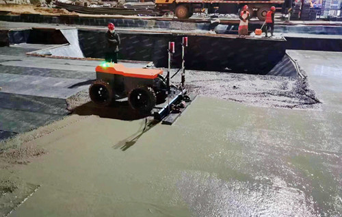 1.激光地面整平機(jī)器人在遙控的操作下進(jìn)行找平施工